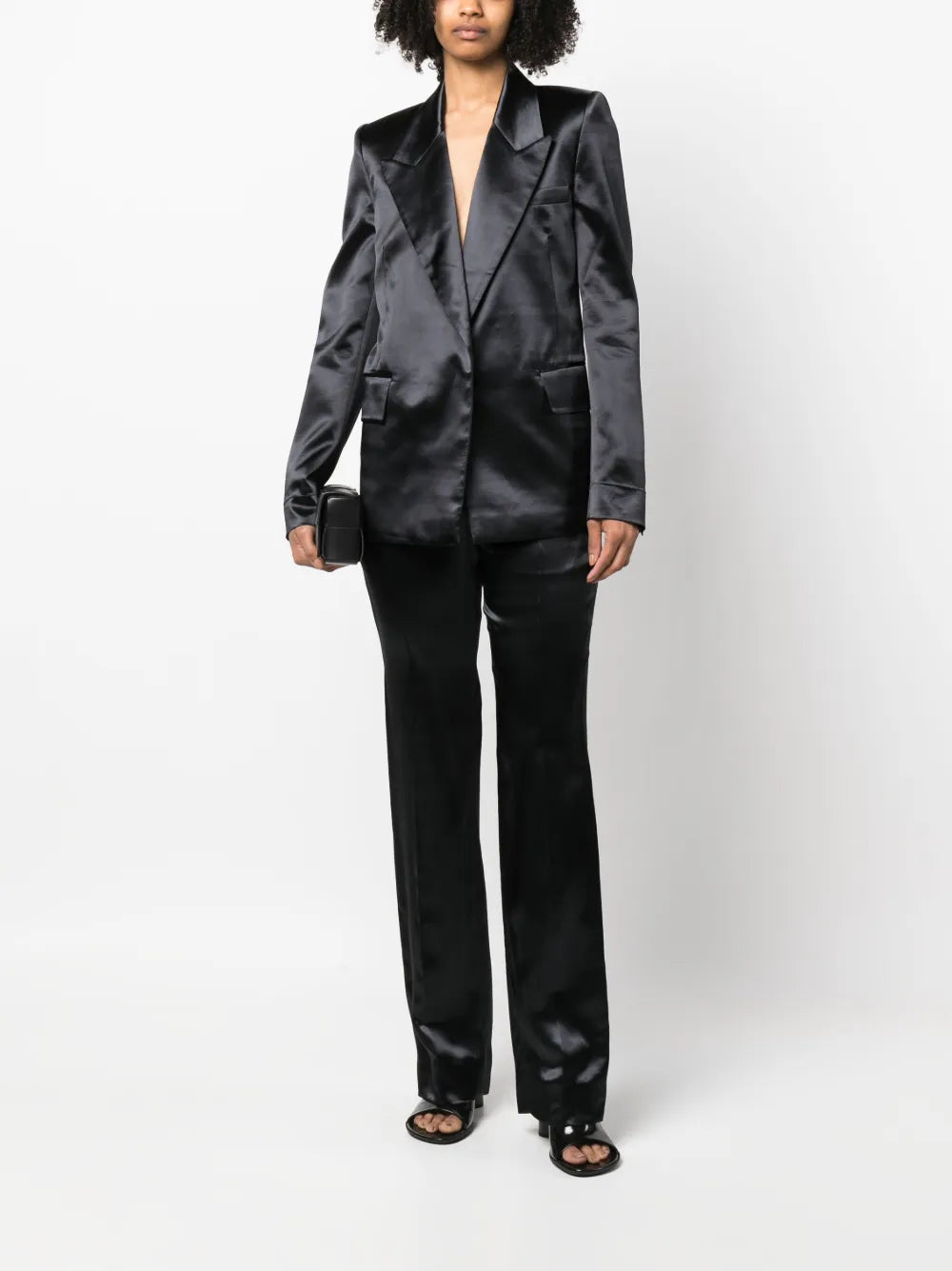 Beige, bavlna, skládací detaily, logo nášivka vzadu, poutka na opasek, skrytý zapínání vpředu, dvě boční kapsy, dvě klopové kapsy vzadu, široké nohavice