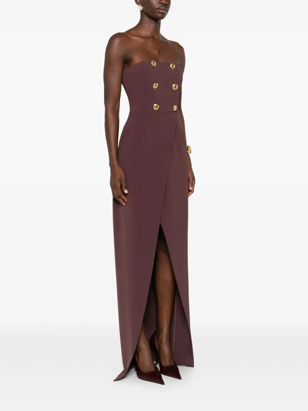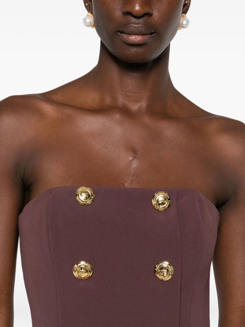 Zavinovací šaty, ozdoba s knoflíky, čokoládově hnědá, bez ramínek, rozparek vpředu