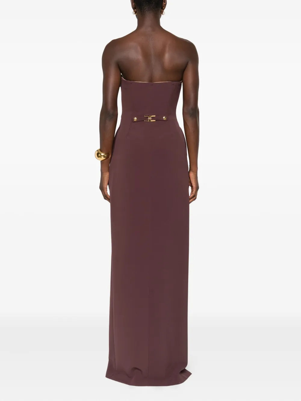 Wickelkleid, Knopfverzierung, Schokoladenbraun, trägerlos, Schlitz vorne