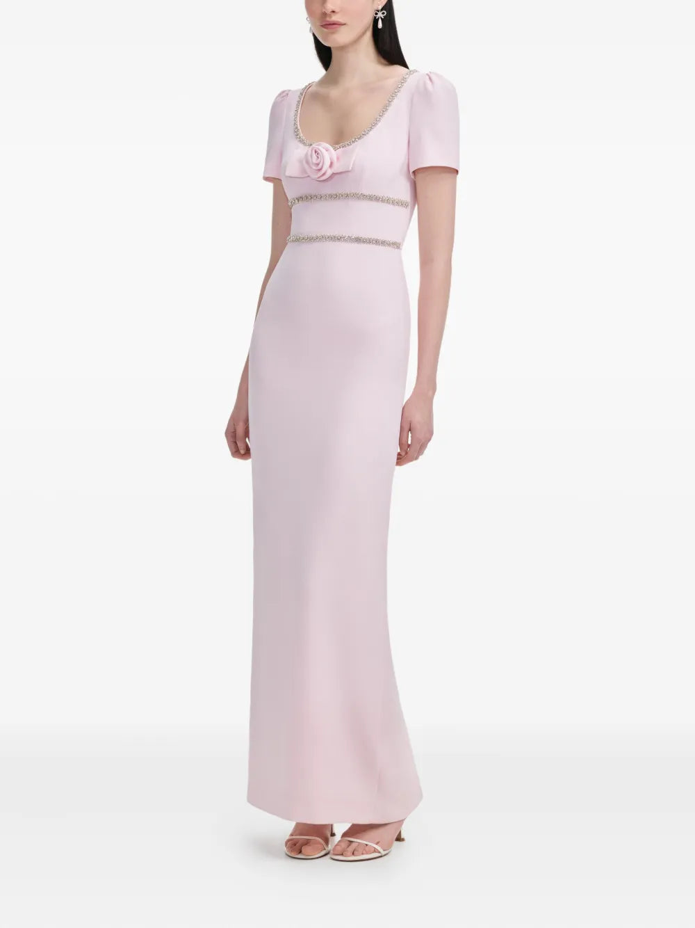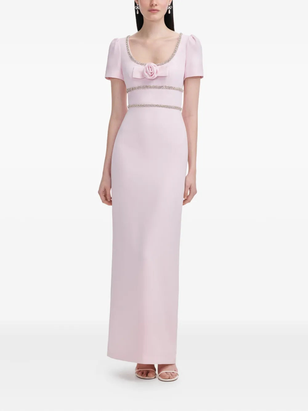 Roze, bloemenapplicaties, split aan de achterkant, korte mouwen