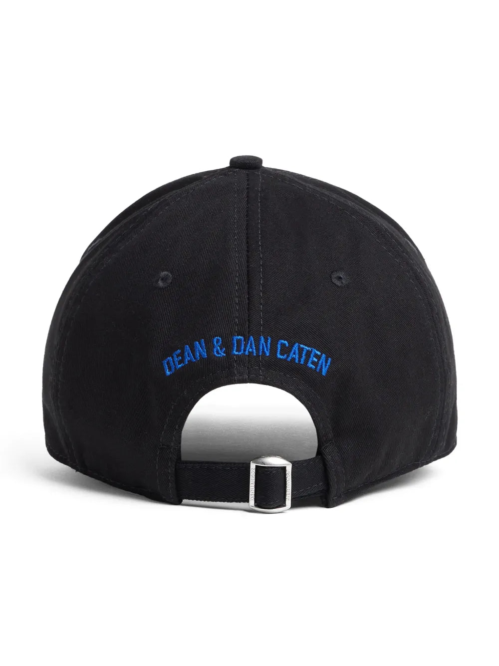 Czarny/niebieski, bawełna, haftowane logo z przodu, zakrzywiony daszek, haftowane hasło z tyłu, regulowany pasek z tyłu.